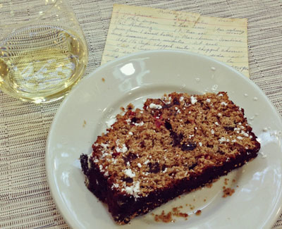 I was moved by Alfonso Cevola’s blog (On the Wine Trail in Italy) one day this past week. The topic was his 98 year old mother, her fruit cake and zeal for life that he obviously shares. His blog was part lament on people justly or unjustly hating fruit cake.  Yet, it was also a salute to his mother’s focus on the her annual tradition of making fruit cake and how she was “out in front of it” baking her fruit cake despite the travails of the hectic holiday season.