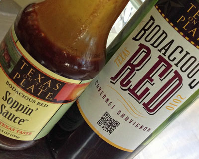 When Terry told me about her new wine creation, I just couldn’t imagine how she would get the wine to work with this sauce; it was so big and multifaceted. However, after doing blending trials with winemaker (and wine blending magician) Greg Bruni, they nailed it and rightly called it Bodacious Texas Red: Cabernet Sauvignon with some Barbera and I am sure a few more hidden red varietals, as well.