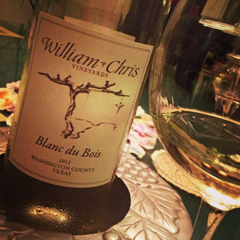 The second Blanc Du Bois tasting was a new offering from the dynamic duo of Bill Blackmon and Chris Brundrett at William Chris Vineyards. It was their 2012 Blanc Du Bois made from grapes grown in Washington County Texas. This wine is soft and friendly with aromas of citrus blossom and fresh and crunchy Bartlett pears on the palate.